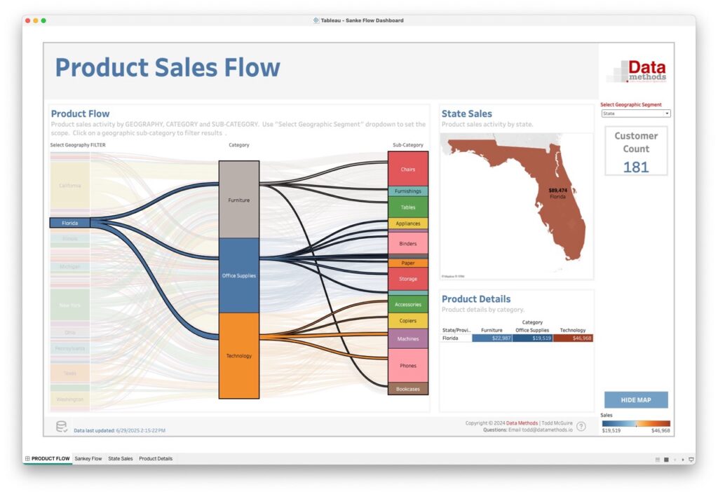 Data is usually messy. Data resides in a variety of locations. Data is constantly in flux. Through thoughtful ETL processes, we can develop a visual workflow to corral, clean, and organize your data to prepare it for use in your data visualization platform.